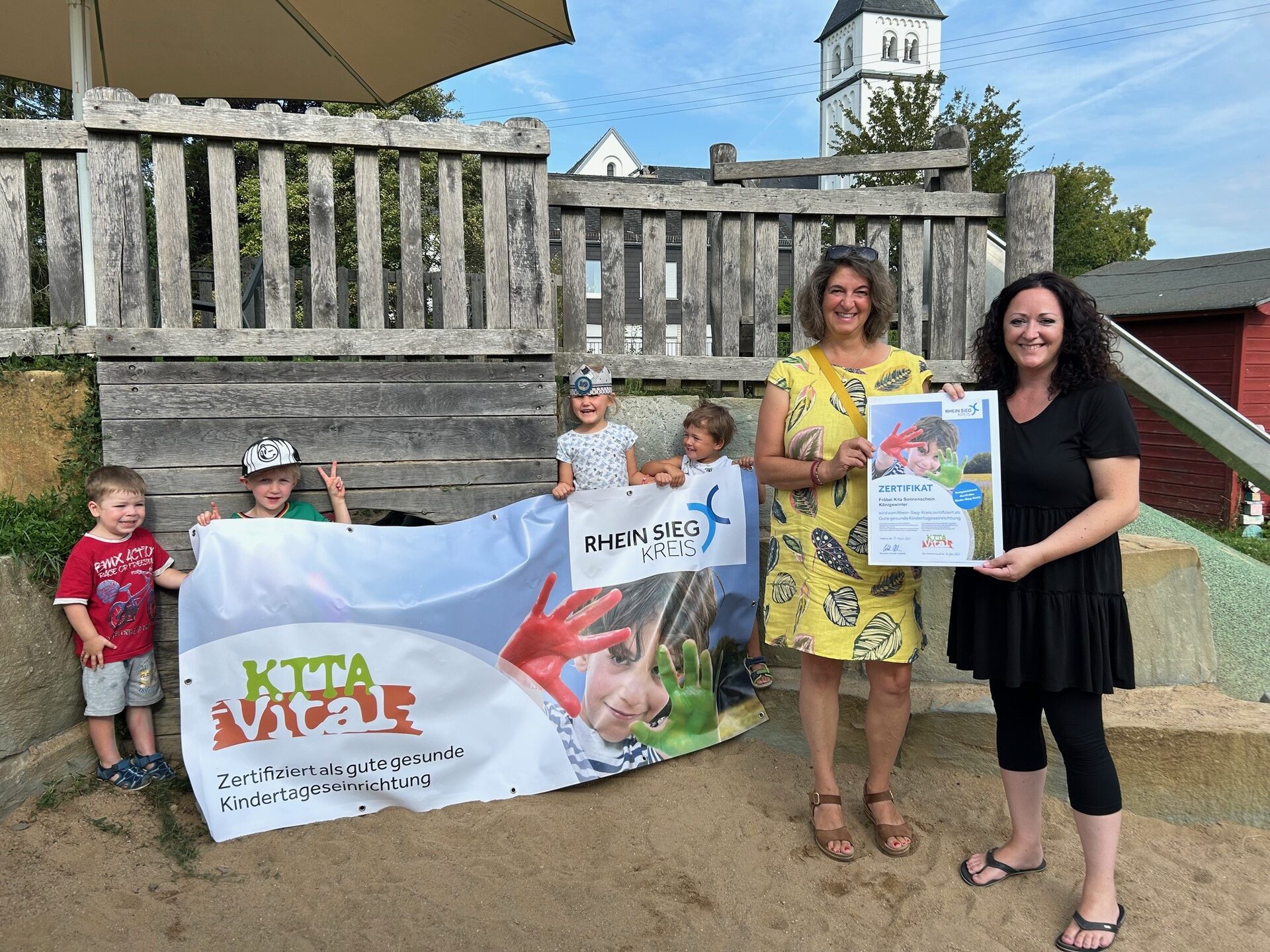 Auf die Frage von Yasmin Gross, Projektkoordinatorin KITA Vital des Gesundheitsamtes Rhein-Sieg-Kreis, welches Resümee Kita- Leiterin Anika Unganz zur Rezertifizierung als KITA Vital-Kita hat, kam ganz spontan der Ausruf „Wir machen motiviert weiter!“