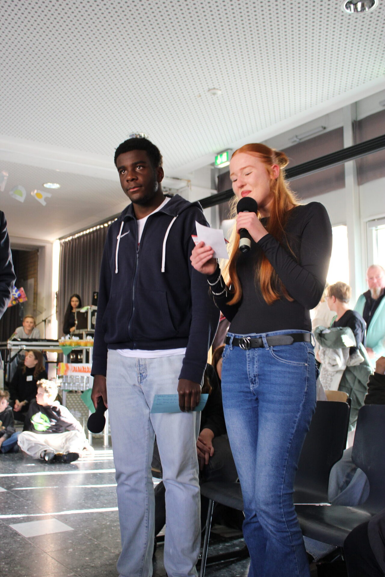 Die Moderation der Veranstaltung lag in den Händen der Schülersprecherin Emilia sowie des Schülersprechers Jemuel, die souverän durch das Programm führten.