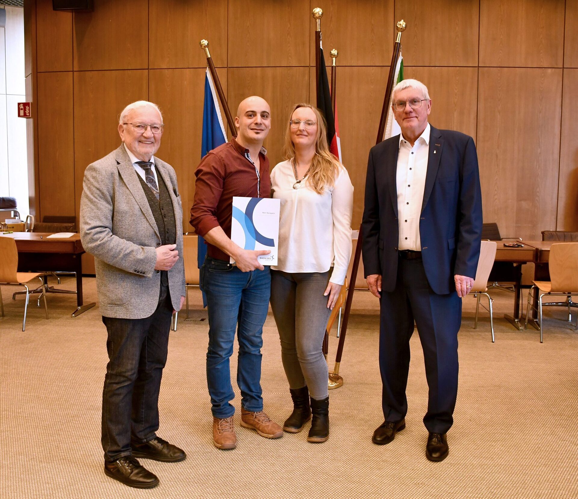 Auch Said Korayem aus Ägypten, der 2011 nach Deutschland kam, konnte seine Einbürgerungsurkunde in Empfang nehmen. Seit 2012 wohnt er im Rhein-Sieg-Kreis, zunächst in Meckenheim und seit 2023, mit seiner Ehefrau, in Wachtberg. „Ich habe mir hier mein Leben aufgebaut: die Ausbildung zum Koch gemacht, heute koche ich in einem Seniorenheim und werde mich weiterqualifizieren, was nun dank der deutschen Staatsbürgerschaft auch einfacher ist“, freute sich Said Korayem, der mit seiner Frau Katharin ins Siegburger Kreishaus, in den Dr.-Franz-Möller-Saal, gekommen war.