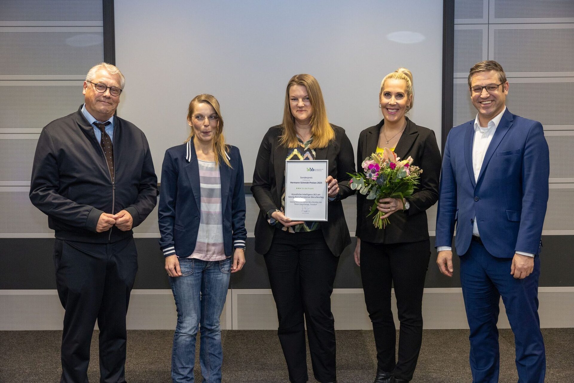 Rhein-Sieg-Kreis (hei) – Das Georg-Kerschensteiner-Berufskolleg des Rhein-Sieg-Kreises in Troisdorf ist mit dem Sonderpreis des renommierten Hermann‑Schmidt‑Preises 2025 ausgezeichnet worden. Prämiert wurde das schulweite Gesamtkonzept „Künstliche Intelligenz (KI) am GKB“, dass bundesweit Maßstäbe für die verantwortungsvolle und systematische Integration von KI in der beruflichen Bildung setzt. Die Preisverleihung fand jetzt beim Bundesinstitut für Berufsbildung (BIBB) in Bonn statt.