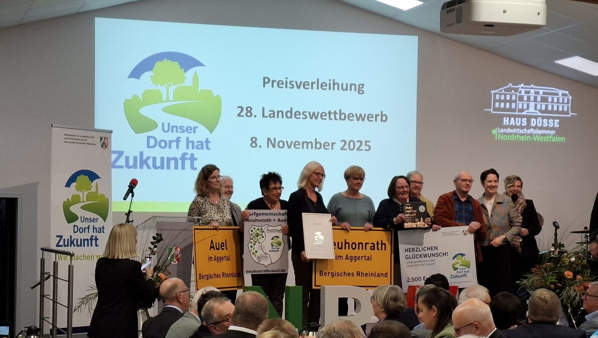„Ich gratuliere den engagierten Mitgliedern der Dorfgemeinschaft ganz herzlich“, freut sich Landrat Sebastian Schuster mit den Gewinnerinnen und Gewinnern. „Diese Auszeichnung ist nicht nur für Neuhonrath-Auel, sondern auch für den gesamten Rhein-Sieg-Kreis ein großartiger Erfolg. Sie zeigt, welche Potenziale im ländlichen Raum vorhanden sind – sie zu entwickeln, ist unsere Chance!“