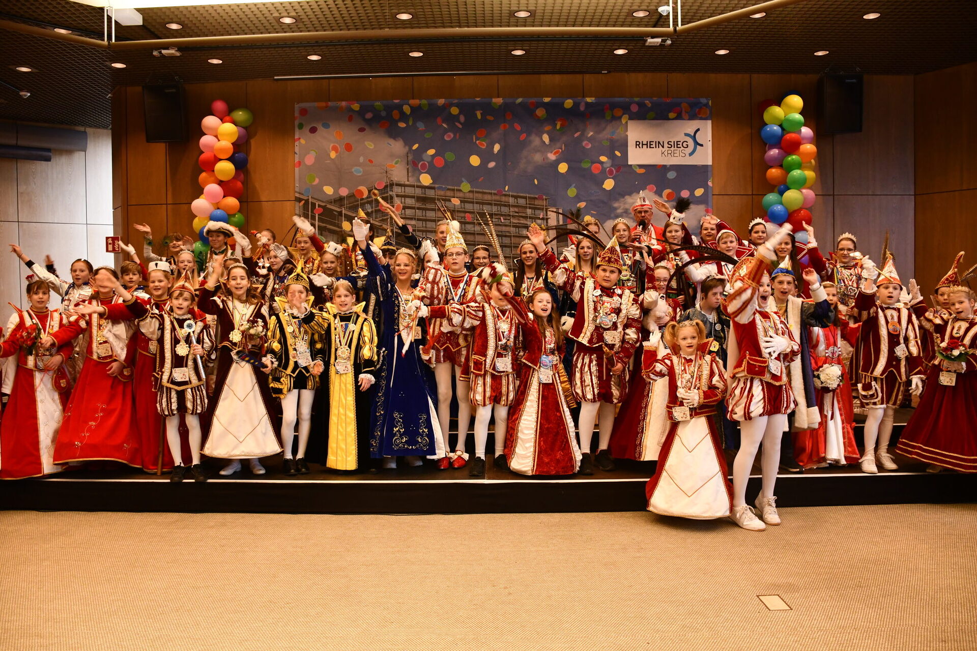 4 Dreigestirne, 18 Kinderprinzenpaare und 4 Kinderprinzessinnen aus den Städten und Gemeinden des Rhein-Sieg-Kreises und der Bundesstadt Bonn erhielten von Landrat Sebastian Schuster und Kreisdirektorin Svenja Udelhoven den Karnevalsorden des Rhein-Sieg-Kreises 2026.