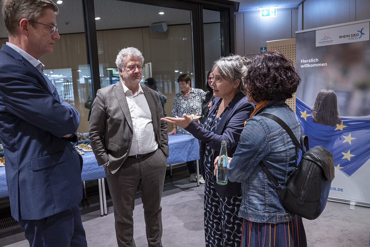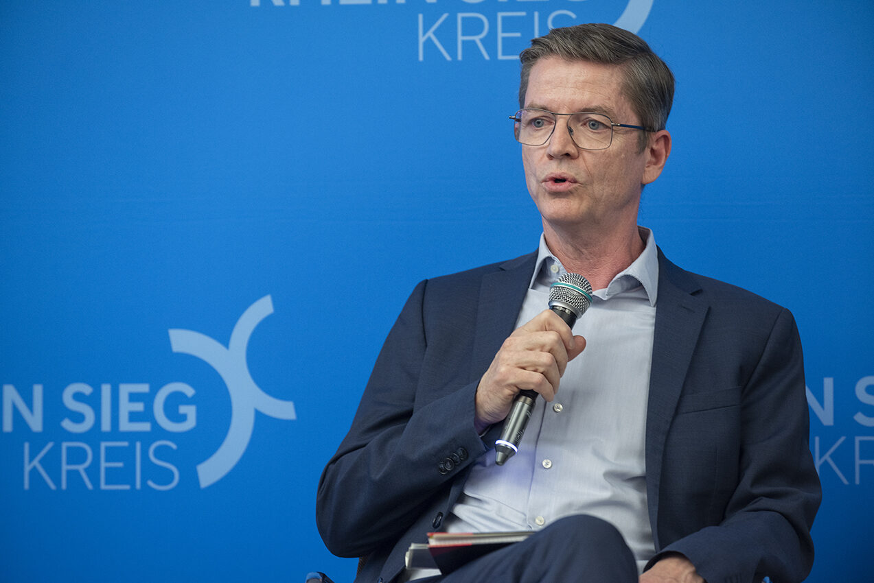 Nach der Eröffnung durch Landrat Sebastian Schuster und einem Grußwort von Dr. Stefan Lock, Leiter der Regionalvertretung der Europäischen Kommission in Bonn, übernahm Sabria David, Digitalphilosophin, Autorin und Medienforscherin. In ihrer Keynote sprach sie über Souveränität, Mündigkeit und Resilienz im europäischen digitalen Raum.
