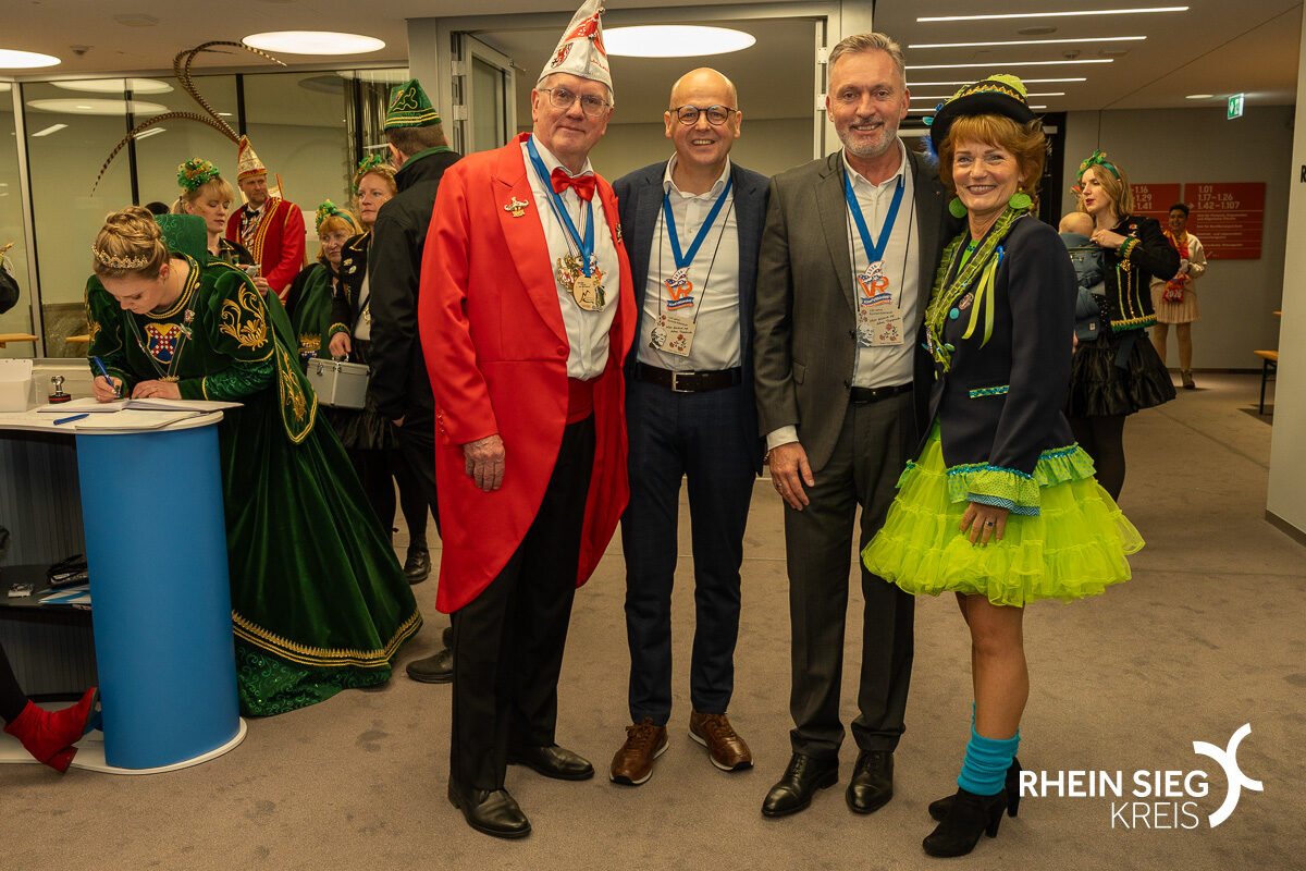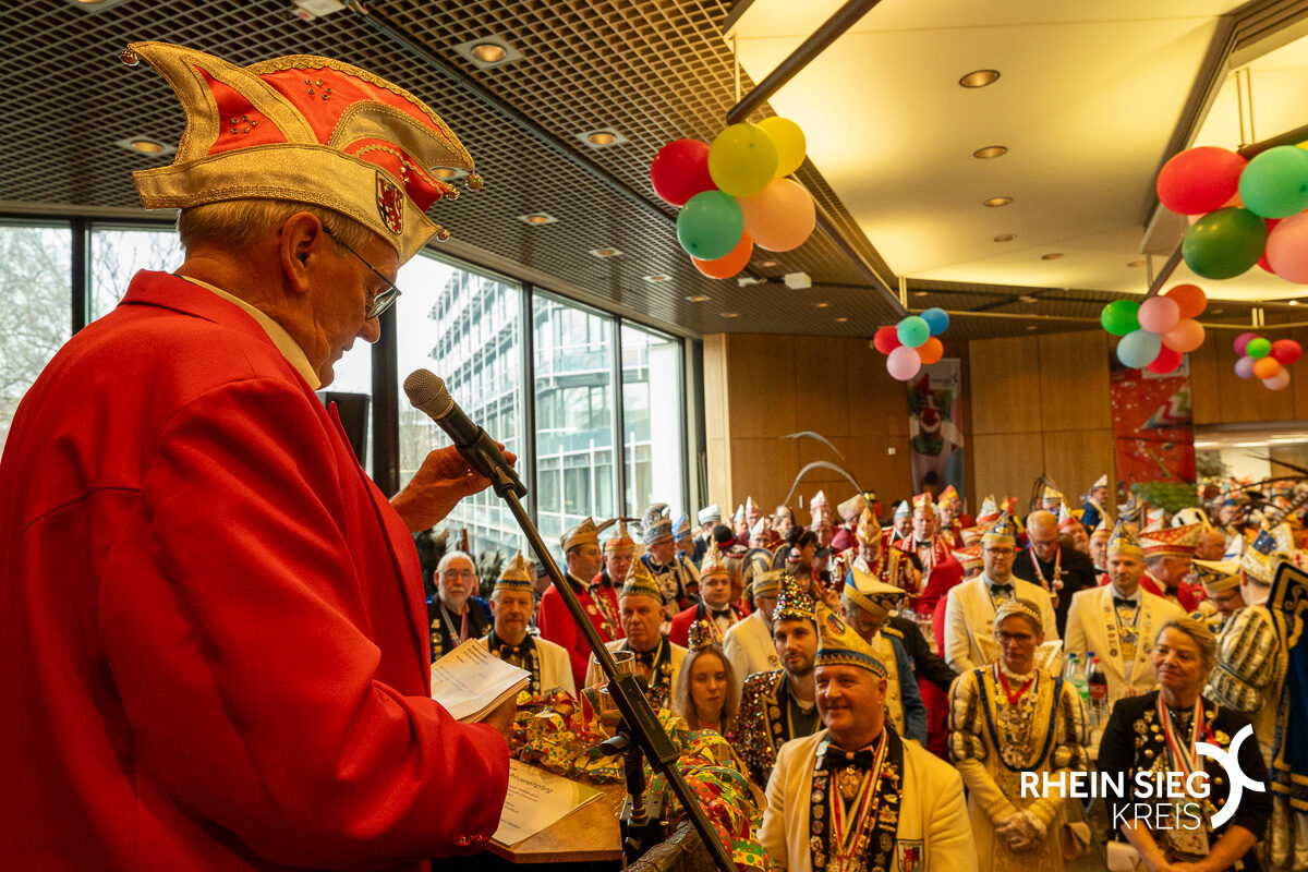 Landrat Sebastian Schuster lud auch in diesem Jahr wieder alles, was in Karneval, Politik und Gesellschaft Rang und Namen hat, ins Siegburger Kreishaus ein und läutete mit gewohnt kurzweiligem Programm die tollen Tage ein. Das 49ste närrische Gipfeltreffen stand dabei unter dem Motto „150 Jahre Konrad Adenauer - Mer blieve op däm Teppich“.